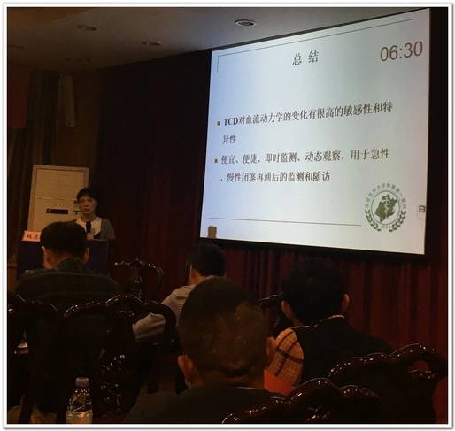 会上,来自福建医科大学附属第一医院的魏慧星主任带来了主题为“TCD在血管闭塞再通中的应用”的学术报告。