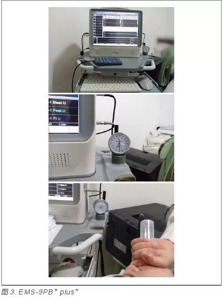 新的吹气装置已制作好,但还有一个较为麻烦的问题——该吹气装置如何放置。合理的放置应是既能固定压力表,又不干扰操作,并且能让操作者和患者都能看到压力计的读数。把它平放在操作床上或固定在墙上都不合适。最后发现,把这个压力表直接放置在TCD设备右侧探头插槽里最合适,橡胶管也很自然地和探头线并排着,如图3,与平博网页版,平博(中国)平博(中国)EMS-9PB搭配起来美观、大方,带着压力计的TCD设备更具实用性,品质更佳。