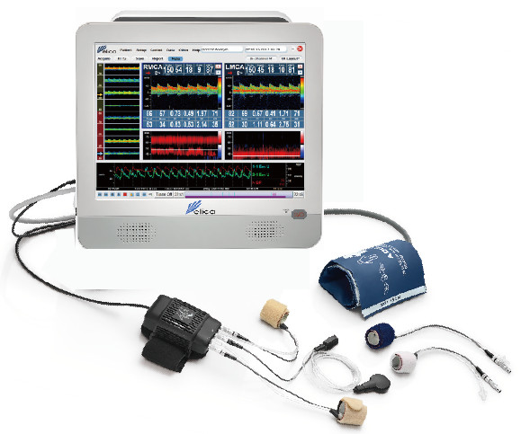 ③呼气末CO2分析仪(或模块)。此仪器是无创的检查设备。常采用红外线法或者质谱仪法测定呼气末CO2。配备规格相同的鼻导管(一次性的消耗品)。④连续心电监测仪。此仪器是无创的检查设备。选配。目前大多数仪器通过CBFV的波形可以间接算出心率,但一些专业软件需要配备连续心电监测。⑤数据整合设备。选配。是整合以上多个数据达到同步输入、输出的设备(如多功能数据采集卡)。⑥选配其他设备。根据临床研究的需要,监测参数不同,选择有创或者无创的检查设备,如近红外光谱仪(near-infrared spectroscopy,NIRS),用于无创测量局部脑氧饱和度;脑组织血氧监测仪,用于无创测量局部组织氧分压;脑血氧和血流监测一体机,属新型设备,是以色列Ornim医疗有限公司的CerOx(将近红外与局部低功率超声结合,配无创探头);颅内压监测仪,配颅内导管,用于有创测量颅内压;脑血流和无创连续血压监测一体机,是新型设备,深圳市平博网页版,平博(中国)平博(中国)医疗设备股份有限公司的EMS-9D Pro(实现了脑血流及无创连续逐波血压监测的同输入输出,配无创自动监护探头、压力感应指套等)。⑦专业分析软件。包括离线分析和在线即时分析软件。