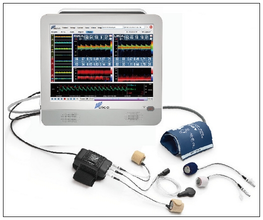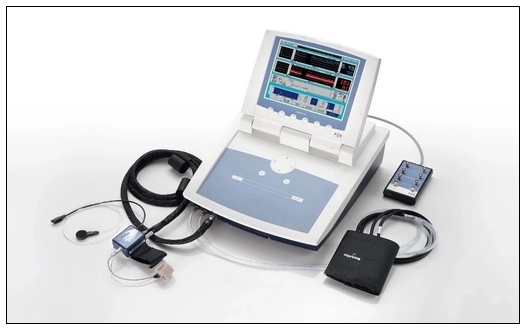 无创性连续逐波血压监测仪。此仪器是无创的检查设备。配备手指动脉容积夹(即指套,此为消耗品),容积夹按照尺寸分大、中、小规格,分别匹配不同粗细的手指。配备校正血压用的袖带血压。