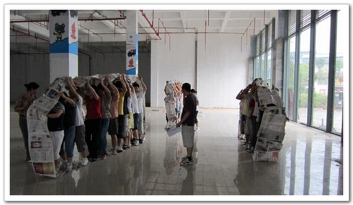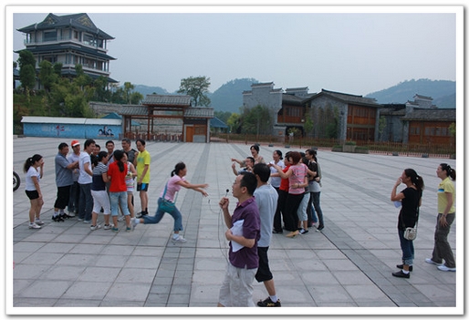 “无敌风火轮”:1、培养了队员间的团结一致,密切配合的合作精神;2、队员们的组织与协调能力; 3、队员如何配合、理解他人。在大家的努力、配合、欢笑与掌声中……….由组长李峥嵘带领的二组团队输了这项比赛,同时作了深刻总结:首先在制作“风火轮”的基础工作上没做好,其次整个团队的步调不一致,团队的队员无法一步一步前进,轮也就无法滚动起来,才导致最后这个局面,所以她给大家的建议是:队员平心静气,配合密切,团结才能取得最终的胜利!