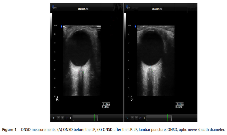Methods: Patients who needed lumbar puncture (LP) in the Department of Neurology were recruited from December 2016 to July 2017. The ONSD and TCD measurements were completed before LP.