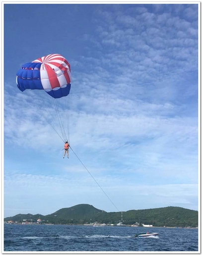 享有“东方夏威夷”之称的芭堤雅,碧海云天如此美景,让大家忍不住跃跃欲试,降落伞让个人尝试挑战上天入海的勇气,同时也体验空中飞翔饱览海上风光。
