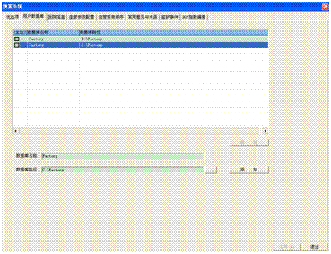答:用户选择进入预置系统中,选择用户数据库设置,首先选择需要加入的原始数据库的路径,然后输入该数据库的文件名,最后点击添加数据库按钮即可。例如插入一个C:\Factory\Factory.mdb的数据库,该数据库路径为:C:\Factory,数据库文件名为Factory,操作如下图: