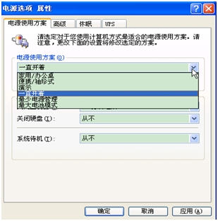 答: 可能和高级电源管理有关系,请按照如下步骤设置电源使用方案。电源使用方案设置过程如下: