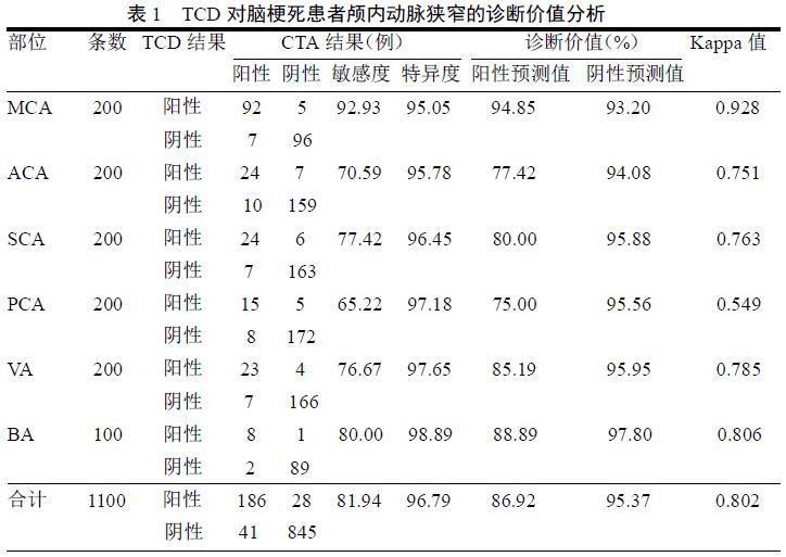 TCD 在脑梗死患者颅内动脉狭窄中的诊断价值