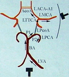 确认试验:因为TICA 在AcoA 之前,通常也在PcoA 之前,无侧支供血,因此,压迫同侧CCA 后其血流速度完全消失或出现反向小尖波(血流倒灌)。这也是鉴别MCA 起始段与TICA 最好的方法。