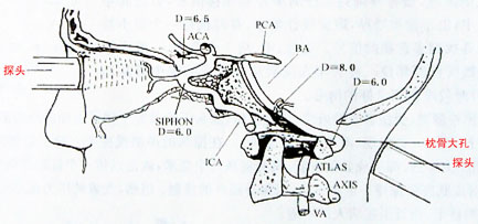 经枕骨下枕骨大孔的途径使超声束达到基底动脉及锥动脉颅内段。