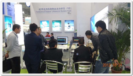 本次会议中我公司展位位于主展厅的3号馆内。展出了我公司的超声经颅多普勒血流分析仪的系列产品。其中,集便携、全自动监护、栓子检测为一体的EMS-9PB高端机型引起与会新老客户的强烈关注,并且得到专家的充分肯定。在此次展会上我公司现场签单,进一步体现我公司在TCD行业内的专业地位,为这次展会划上一个圆满的句号。