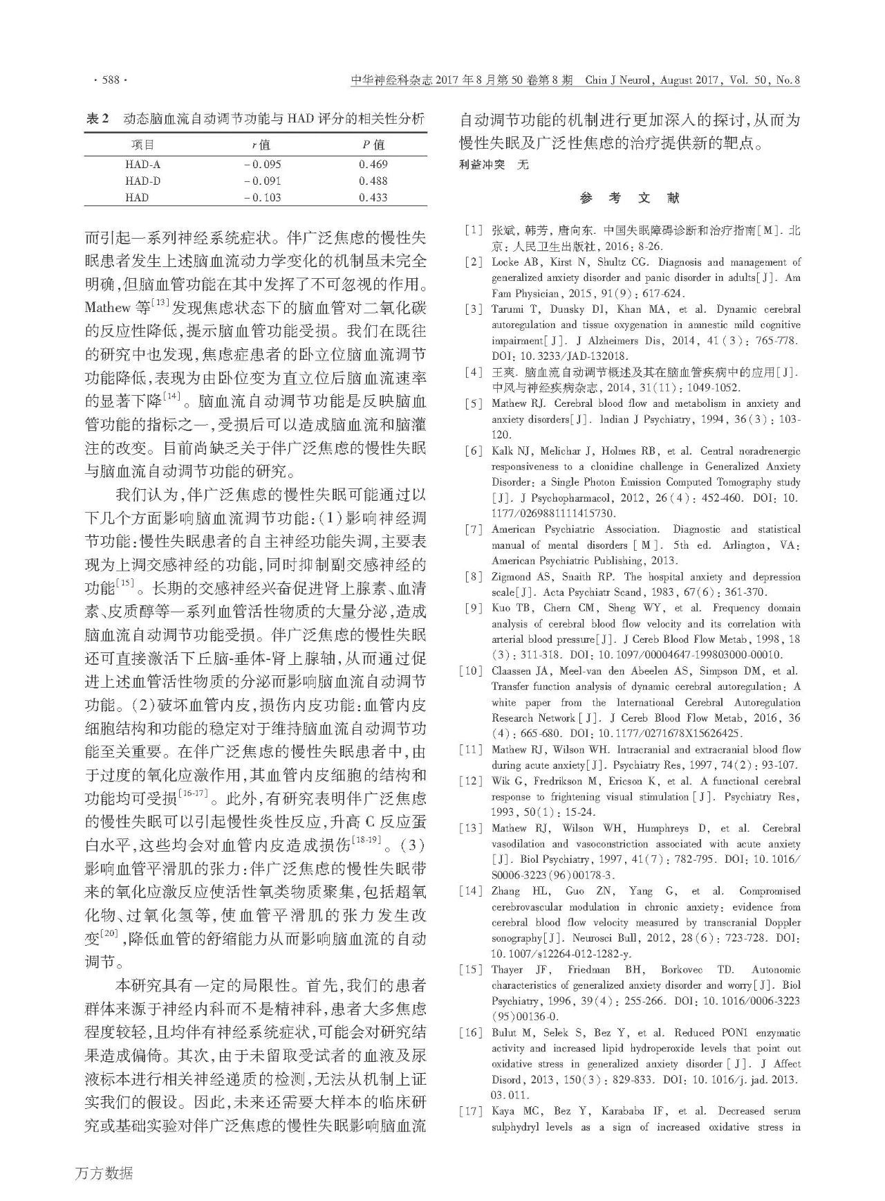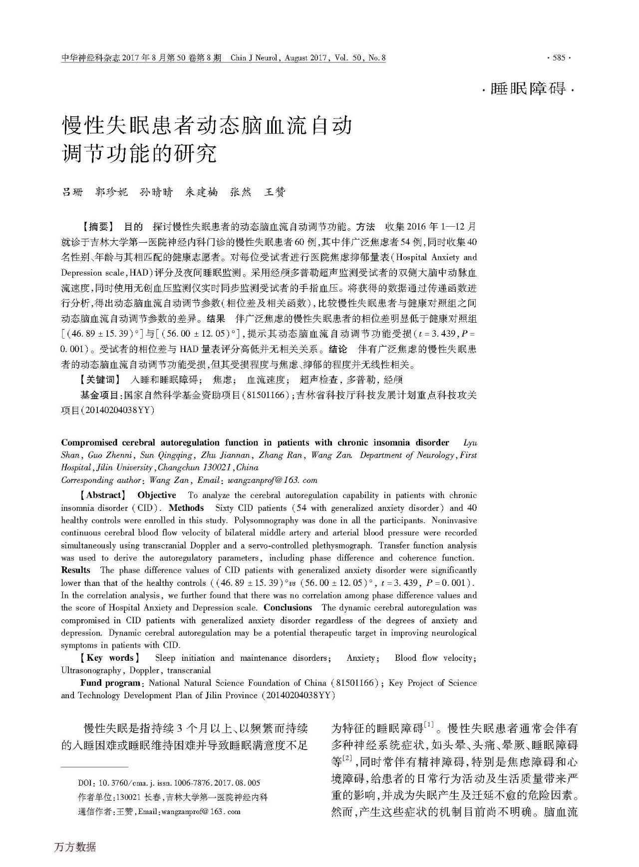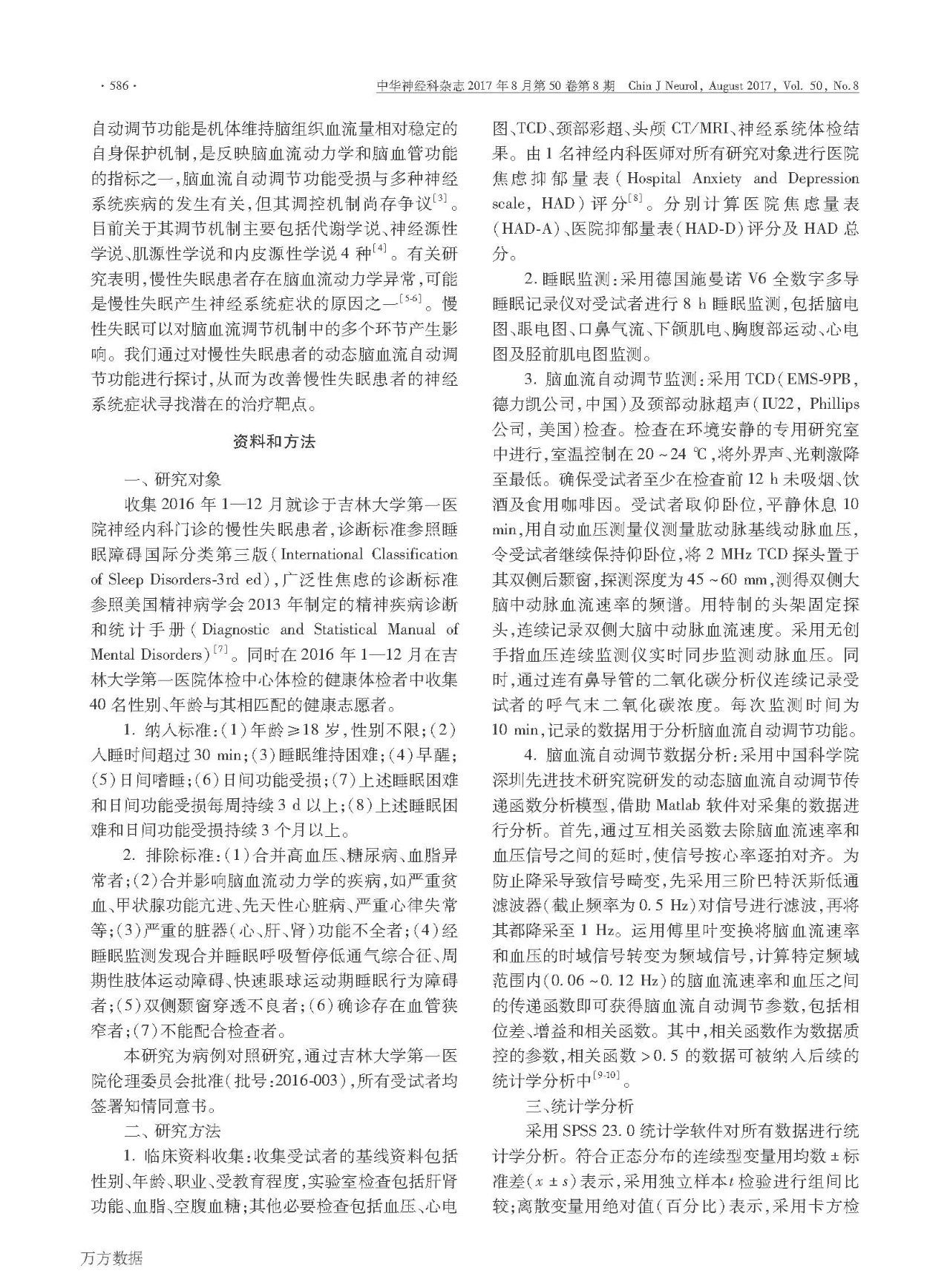 [论文]慢性失眠患者动态脑血流自动调节功能的研究