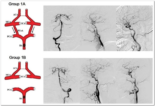 前交通动脉和后交通动脉(ACoA和PCoA)对动态脑自动调节(dCA)的影响在很大程度上是未知的。在这项研究中,我们的目标是在根据DSA确定的两种常见类型的狭窄中,测试其侧枝解剖学的实质差异是否与dCA的差异相关:孤立性基底动脉和/或双侧椎动脉严重狭窄/闭塞(第1组;第1A组:双侧PCoAs;第1B组:无双侧PCoAs),或孤立性单侧颈内动脉严重狭窄/闭塞(第2组;第2A组:不含ACoA且含有PCoA;第2B组:含ACoA且不含PCoA;和第2C组:不含ACoA和PCoA)。通过传递函数分析(数学模型)计算dCA,并在大脑中动脉(MCA)和/或大脑后动脉(PCA)中进行评估。在2014年至2017年期间,我们实验室共接收了231例非急性期缺血性卒中患者,他们都接受了dCA评估和DSA的检查。根据ACoA或PCoA的存在与否,其中51例患者符合纳入标准,包括有21例患者划分在第一组,有30名患者划分在第2组中。第1A组和第1B组之间,以及第2A组,第2B组和第2C组之间在性别,年龄和平均血压方面没有显着差异。在第1组中,具有PCoAs的亚组的PCA相位差值(自动调节参数)显着高于没有PCOA的亚组。在第2组中,与没有ACoA的患者相比,具有ACoA的亚组的MCA相位差值更高。该初步研究发现,ACoA / PCoA向受影响区域的侧枝循环代偿弥补了受影响区域中受损的dCA,这表明ACoA / PCoA在稳定脑血流中起重要作用。