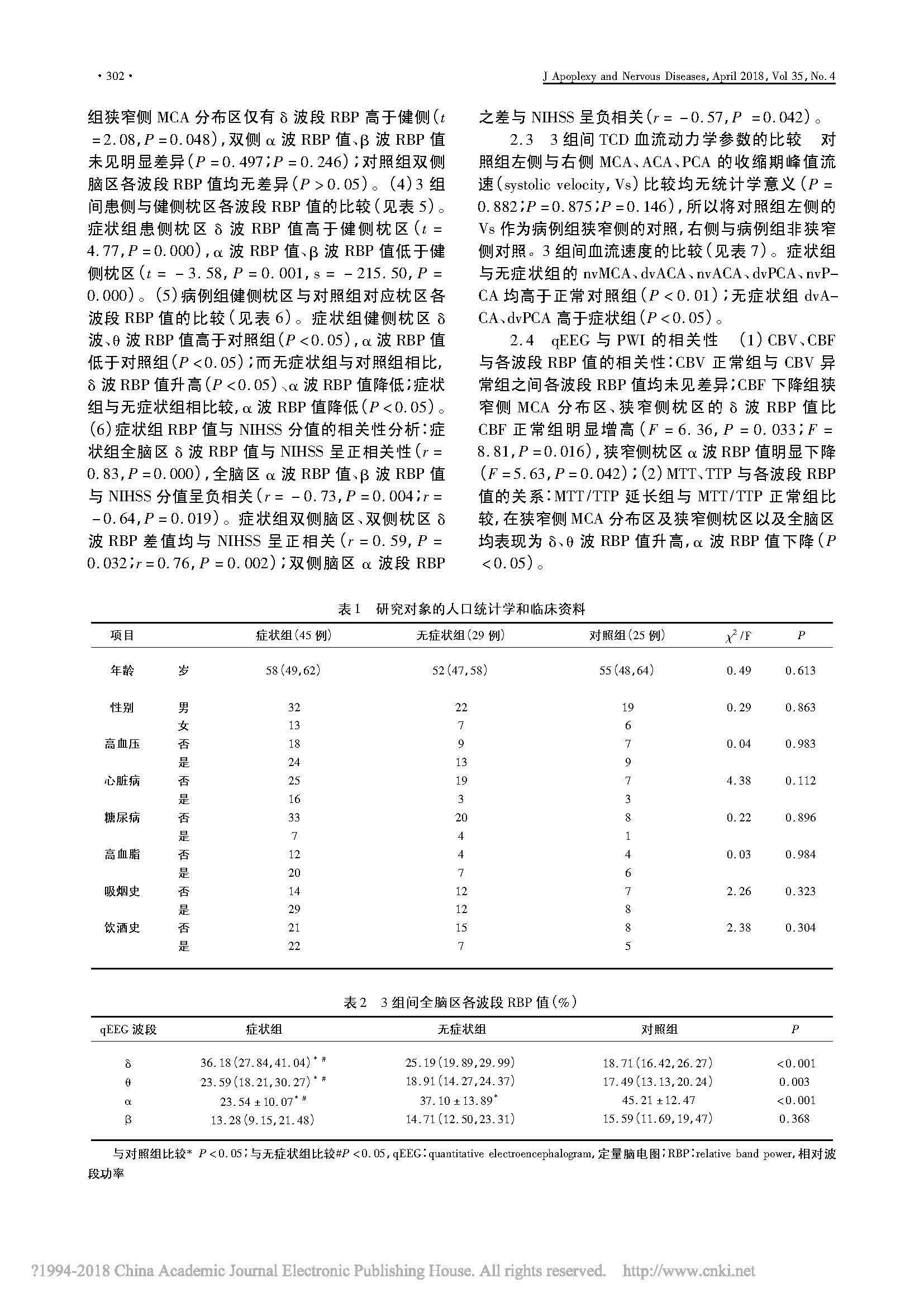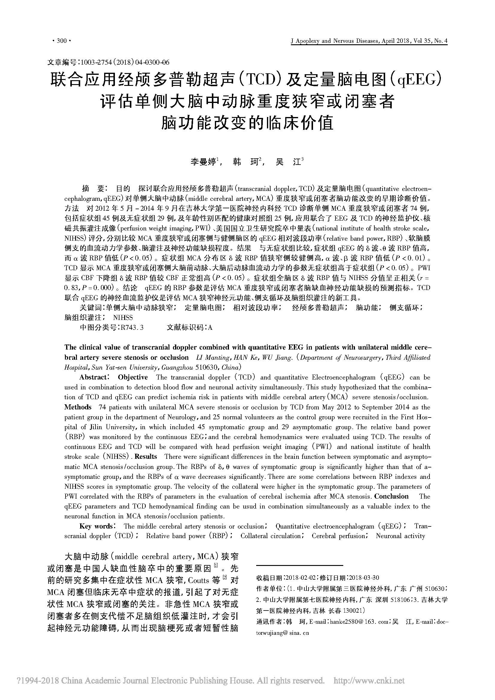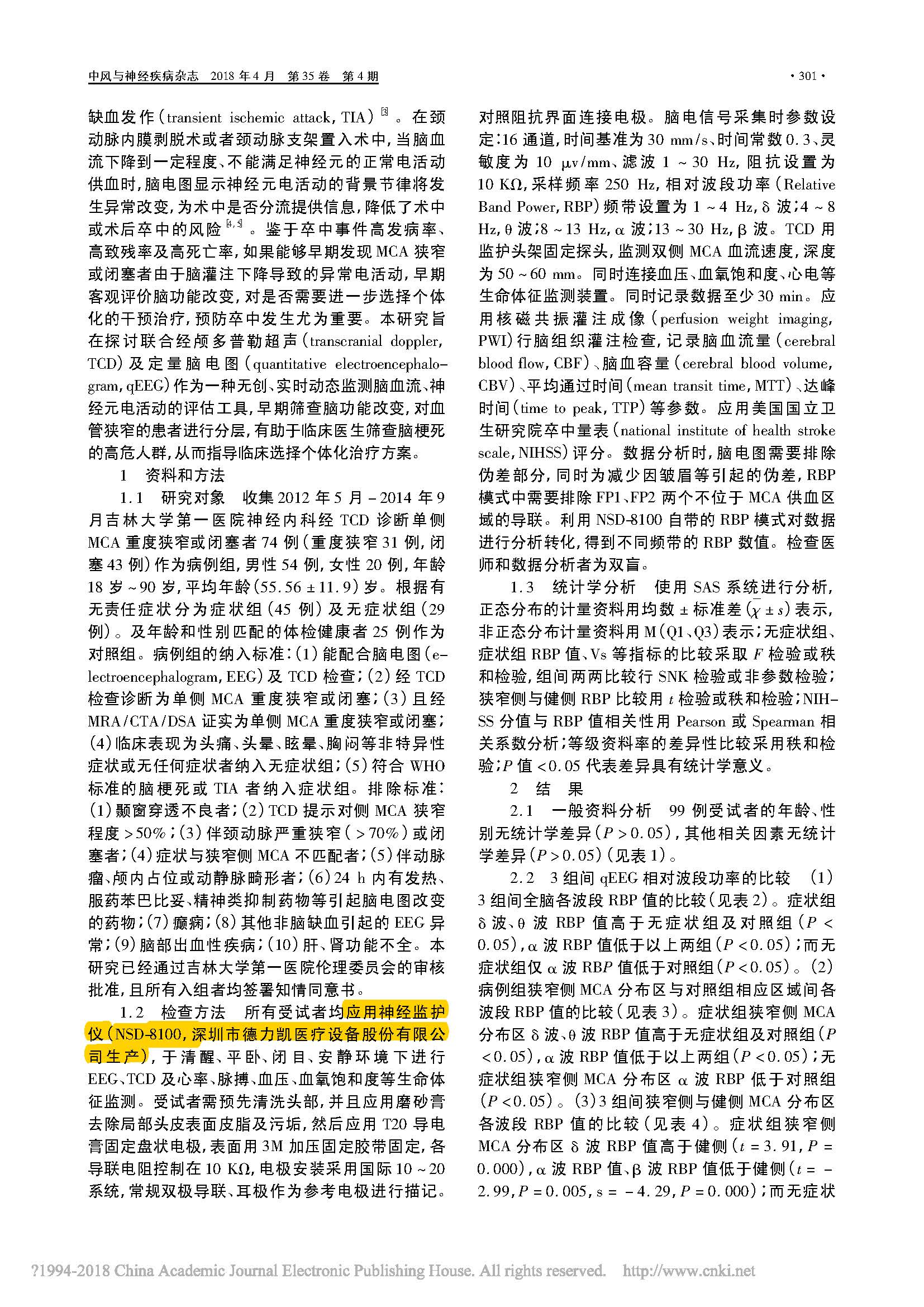 联合应用经颅多普勒超声_TCD__省略_狭窄或闭塞者脑功能改变的临床价值_李曼婷
